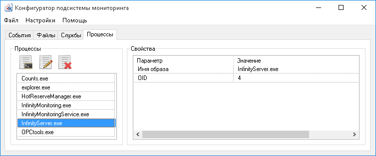 - Настройка параметров для чтения полученных данных о процессах и управления процессами.